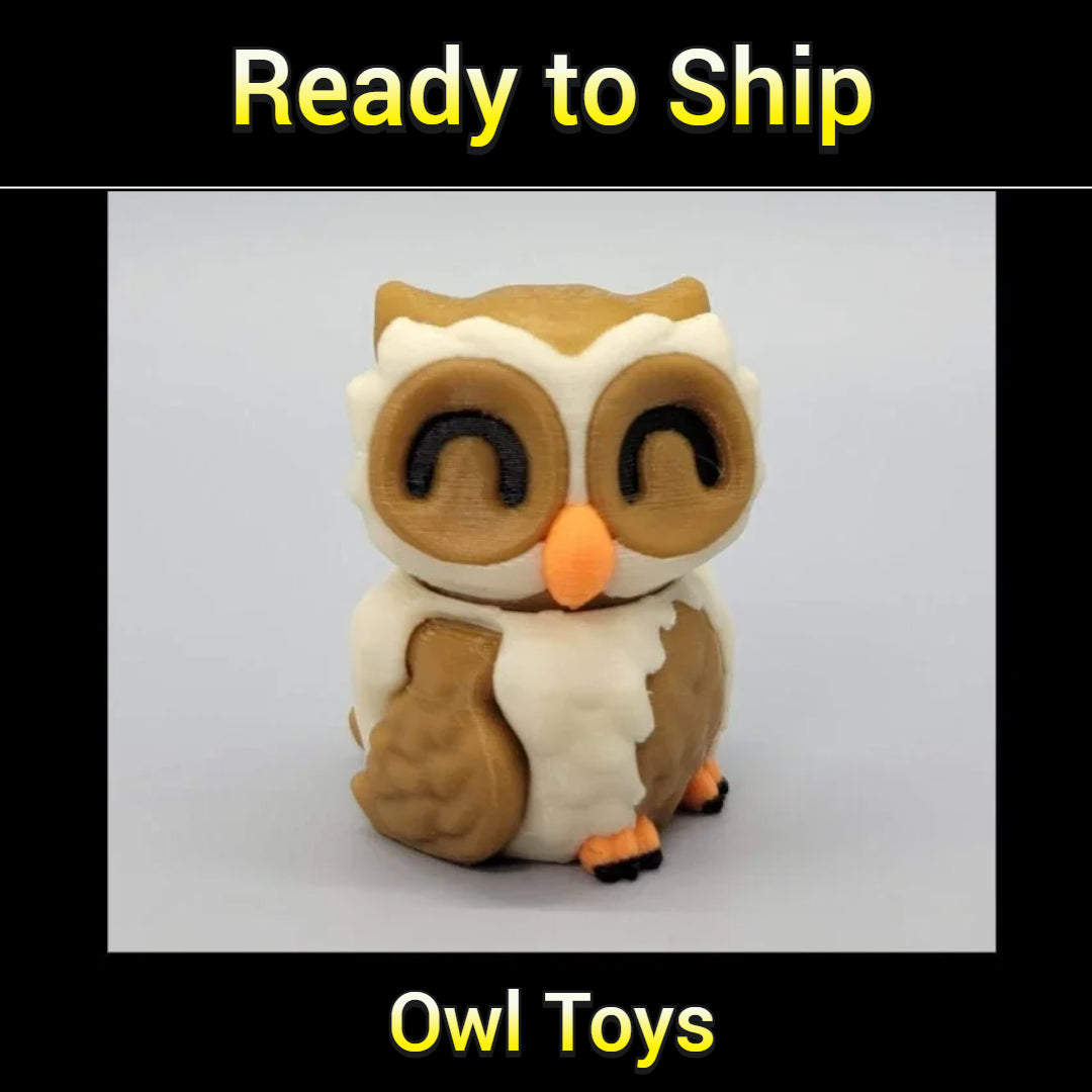 ¡Estos adorables búhos articulados están listos para enviarse, sin necesidad de esperar para imprimirlos!