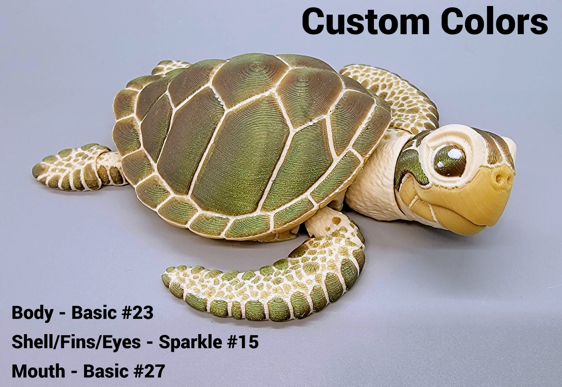 Bring ocean charm to your shelf or desk with this articulated sea turtle toy. Designed with smooth flexible joints and a friendly expressive style, this turtle is perfect for fidgeting display gifts or animal lovers of all ages. Each turtle is carefully printed for durability and movement while keeping a cute collectible look.
