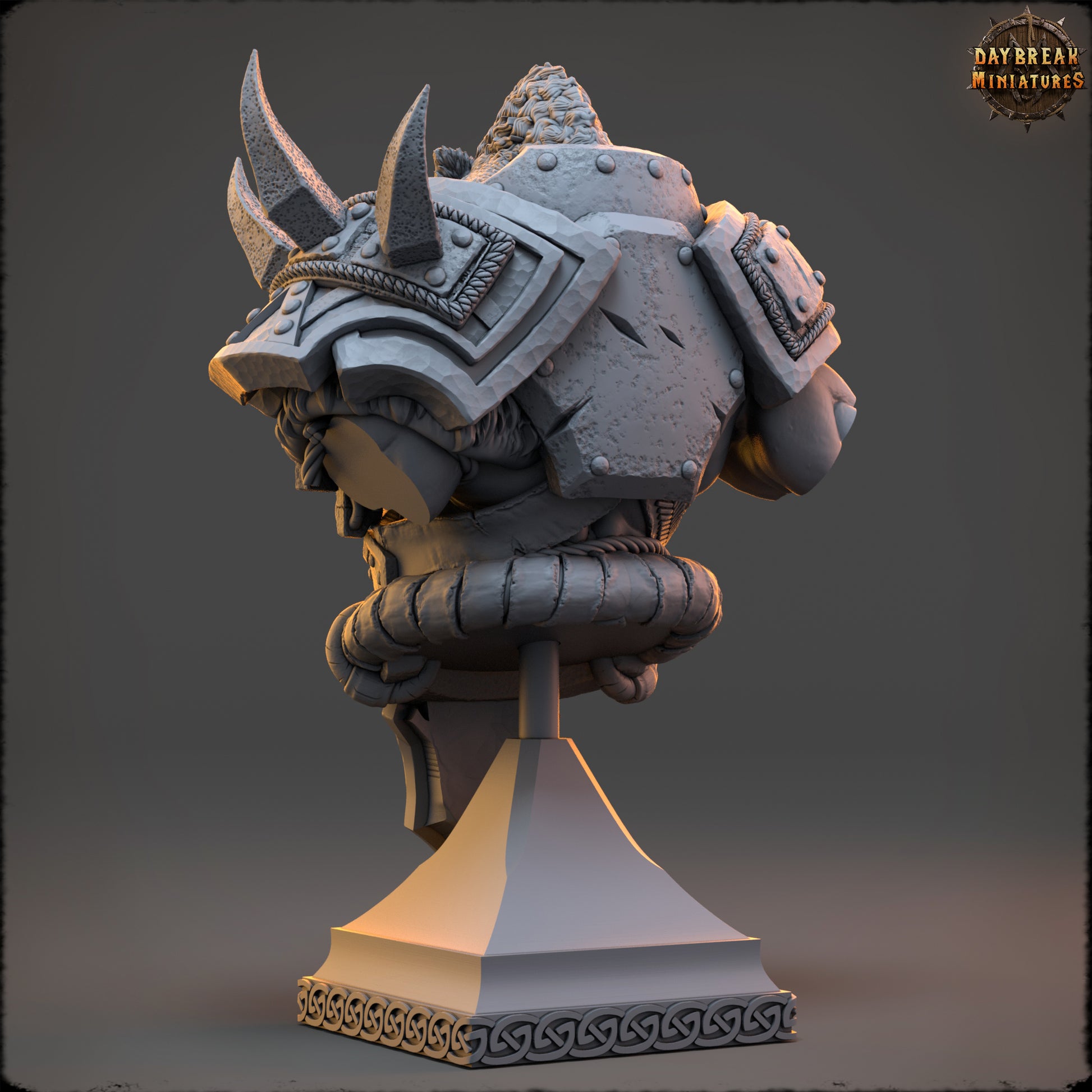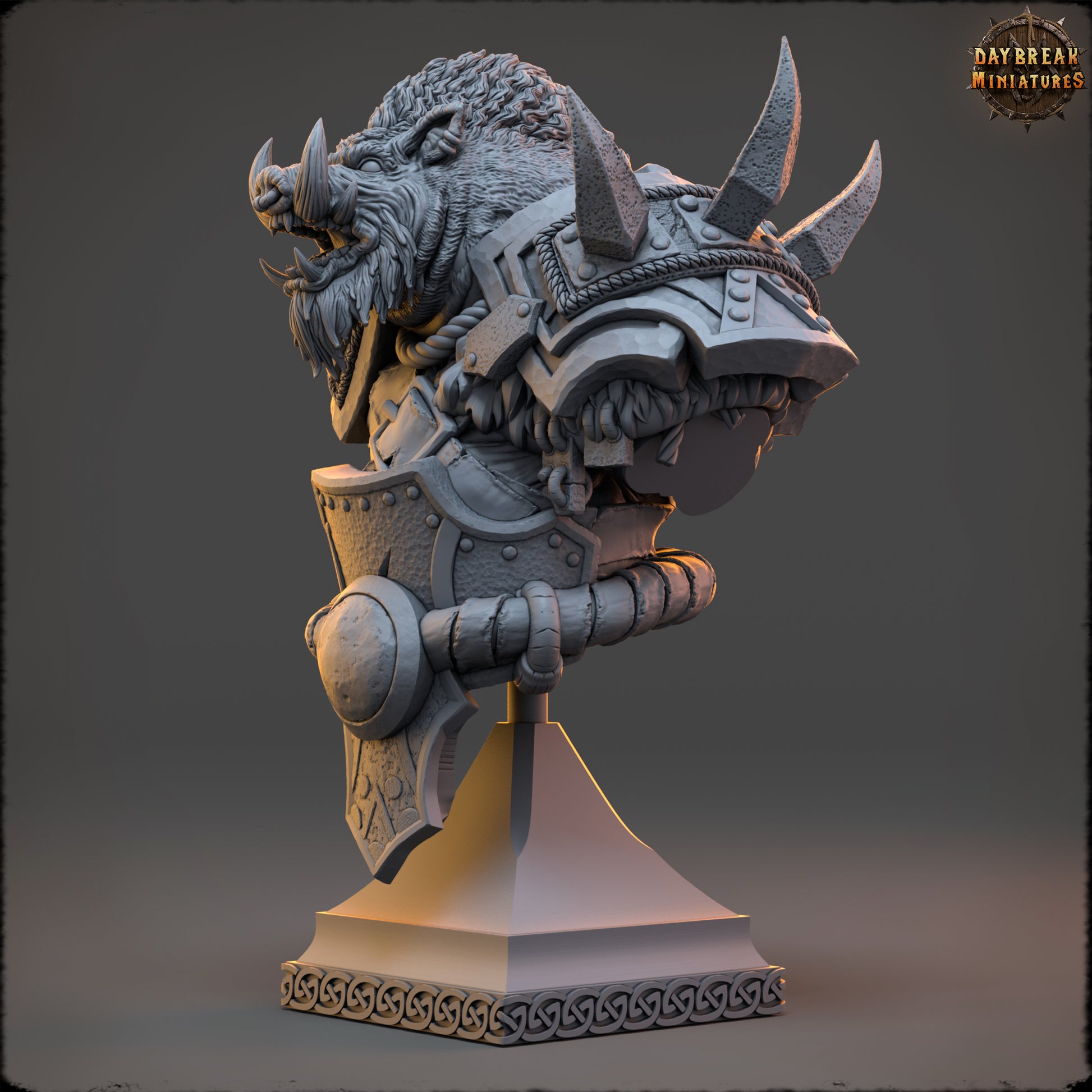 Druzz Warthide towers with brutal strength, clad in heavy armor and wielding savage axes. Available as a 32mm or 54mm scale miniature for tabletop play, or as a display bust for collectors and painters.