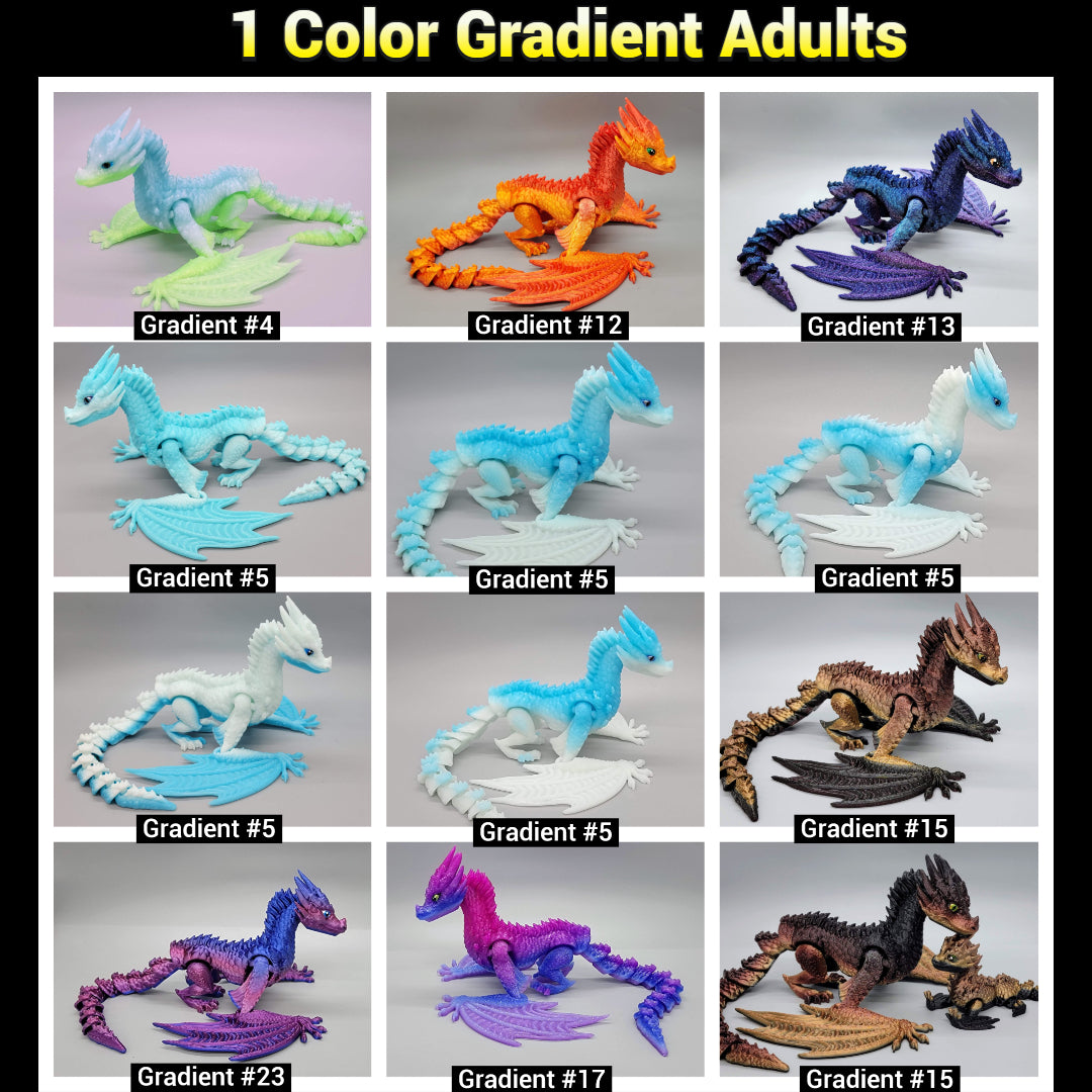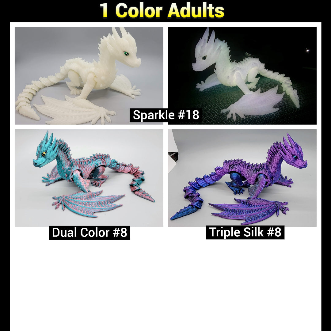 ~ Adult Wyverns pose to stand, sit, lay, or rear up ~ Baby Fyros stands, sits, or lays adorably ~ Choose from 240+ colors or pick up to 4 for Multi-Color style ~ Available in Small (9"), Large (13"), and Baby (3" body, 6" with tail) ~ Optional hand-painted eyes for added magic