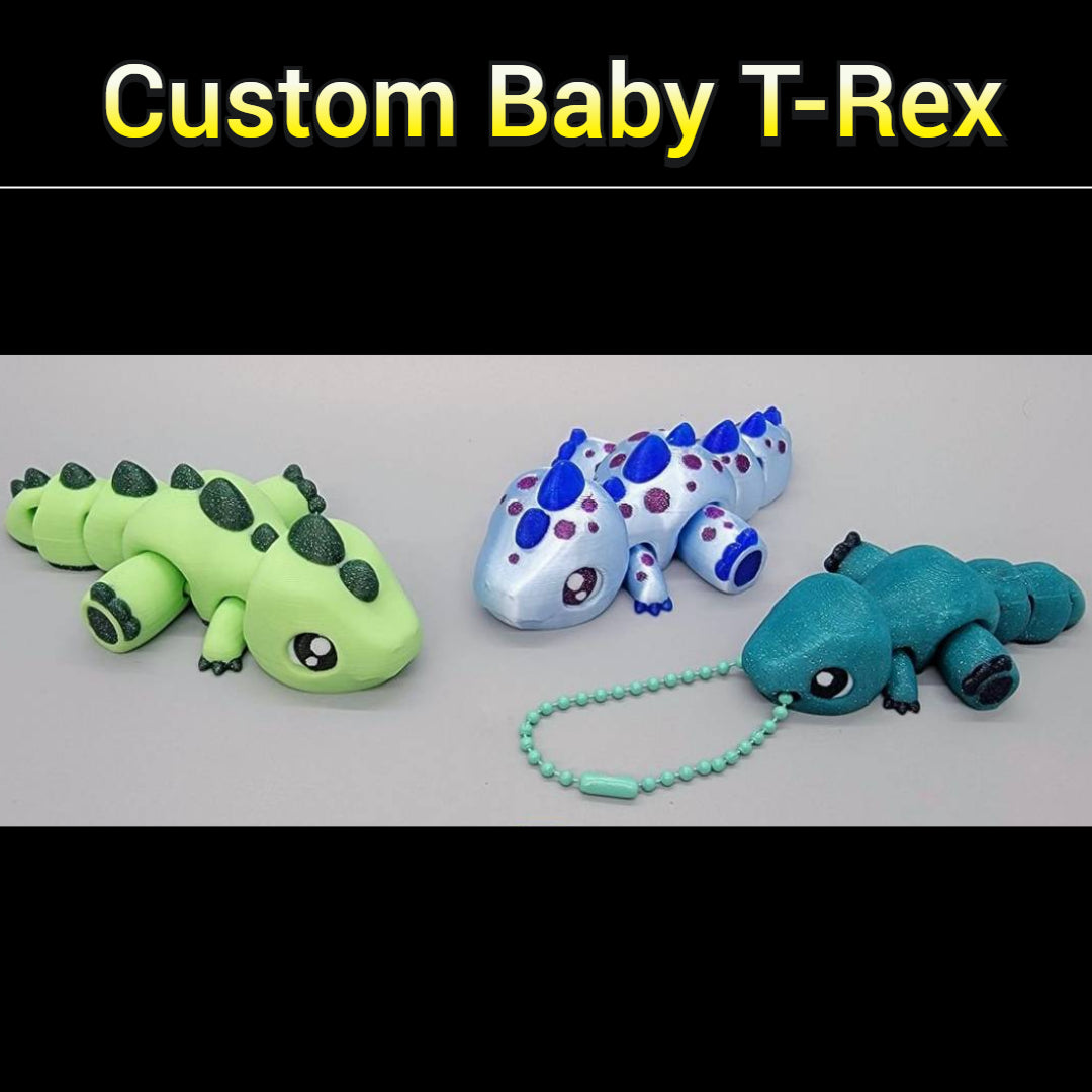 This adorable Baby T-Rex is a floppy, flexible companion perfect for dino lovers of all ages! Designed to feel more like a tiny stuffed animal than a rigid figure, this 3D printed T-Rex wiggles and flops—ideal as a playful toy or fun keychain charm.